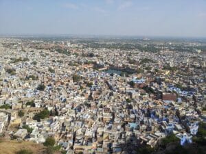 Después de disfrutar de un abundante desayuno en nuestro hotel, nos espera un fascinante recorrido por la ciudad de Jodhpur. Nuestro primer destino será la impresionante Fortaleza Mehrangarh, una maravilla arquitectónica que se alza majestuosamente sobre la ciudad. Esta fortaleza masiva, aparentemente inexpugnable en su base rocosa, nos llevará a una época de grandeza y esplendor. Exploraremos los palacios reales dentro de la fortaleza, cada uno con su propia historia fascinante y tesoros invaluables. Desde la imponente Armería hasta el conmovedor Jaswant Tara, el crematorio real, cada rincón de la fortaleza nos contará una historia única.