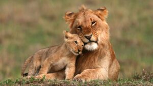 – Leones del Ngorongoro: Aproximadamente 60-70 leones viven permanentemente en el cráter, organizados en varias manadas. Curiosamente, los machos aquí tienen melenas menos desarrolladas que en otros lugares, posiblemente debido a los combates frecuentes con búfalos o factores genéticos por la población aislada.