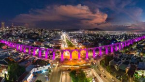 Exploramos Querétaro, ciudad histórica que fue capital de México. Visitaremos el mirador y el impresionante Acueducto construido durante el reinado del Rey Felipe V a mitad del siglo XVII. Recorremos el ex convento de la Cruz y el centro histórico con sus templos y callejones. Terminamos el día en el Cerro de las Campanas, lugar clave en la historia de México. Almorzaremos en un centro comercial (almuerzo no incluido).