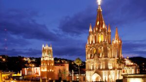 Partimos hacia Guanajuato, un pueblo lleno de historia y folclore. Exploramos sus famosos túneles y calles. Hacemos una parada en San Miguel de Allende, conocida por su catedral y arquitectura colonial. Al anochecer, disfrutamos de una callejoneada, una tradición local acompañada de música y leyendas.